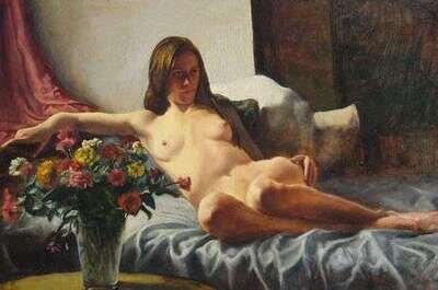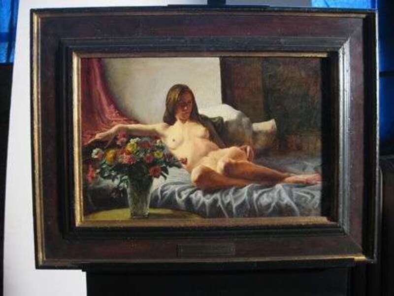 JASON B. FISHER (AMERICAN 20TH CENTURY) NUDE WOMAN WITH AWARD/PLAQUE