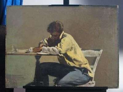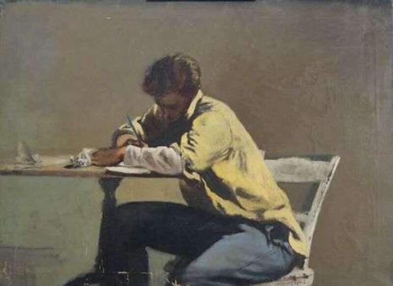 WALTER STUEMPFIG JR (AMERICAN 1914-1970) YOUNG MAN WRITING