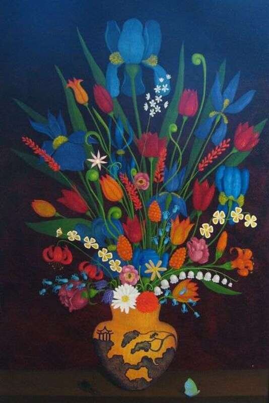 CHARLES JAY (AMERICAN 20TH CENTURY) STILL LIFE OF FLOWERS AND INSECTS
