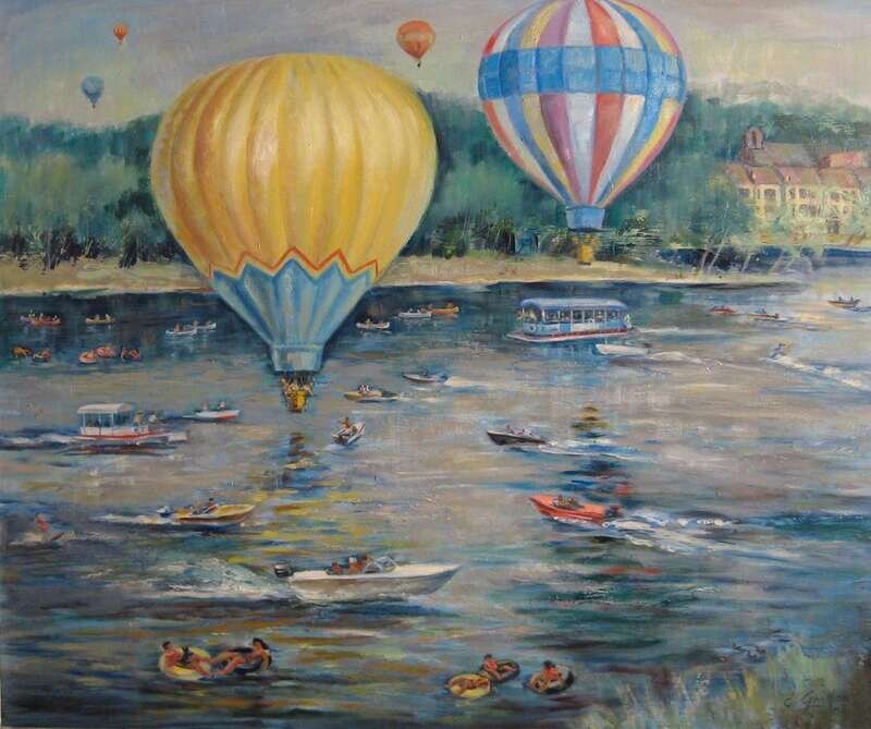 DOROTHY GRIDER (AMERICAN 20TH CENTURY) SUMMER TUBING ON THE DELAWARE (BETWEEN NEW HOPE & LAMBERTVILLE)