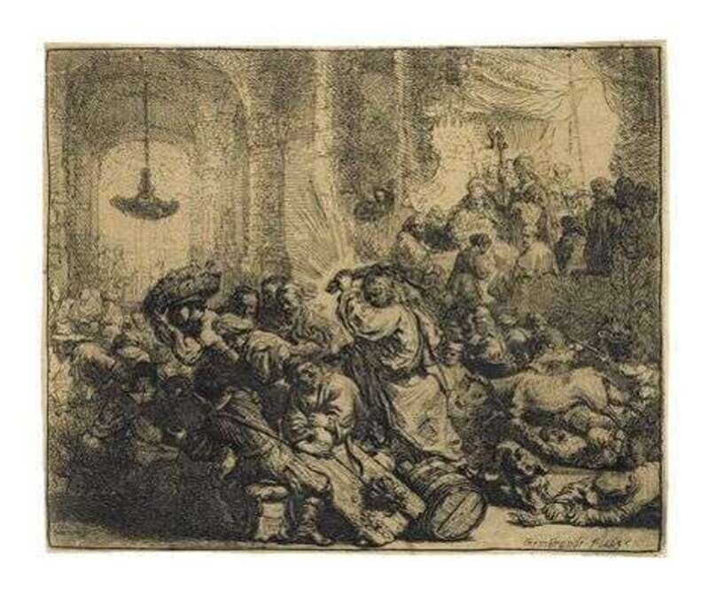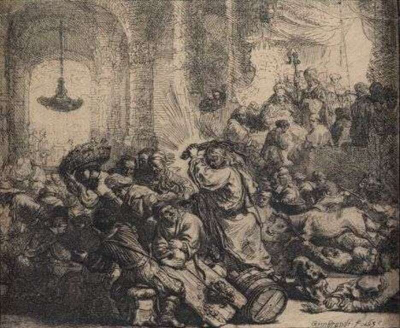 REMBRANDT HARMENSZ VAN RIJN (DUTCH 1606-1669) "CHRIST DRIVING THE MONEY CHANGERS FROM THE TEMPLE"