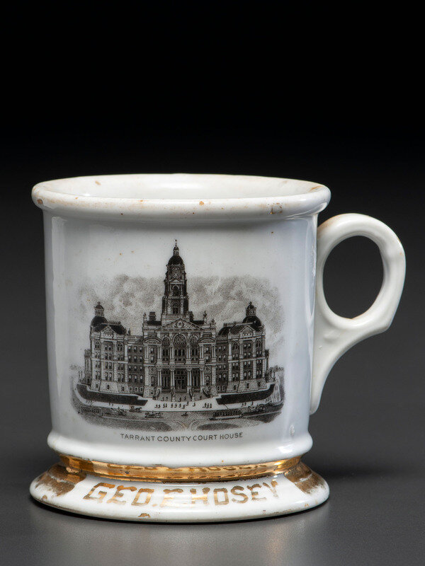 with the name Geo. E. Hosey in gilt lettering below a transfer image of the Tarrant County Court House in Fort Worth.
