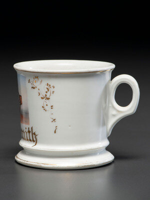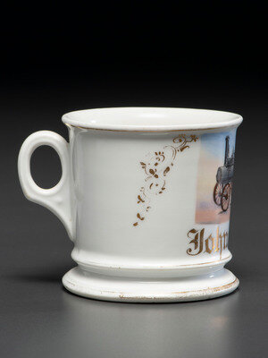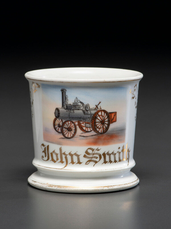A Porcelain Occupational Shaving Mug Depicting a Steam Tractor