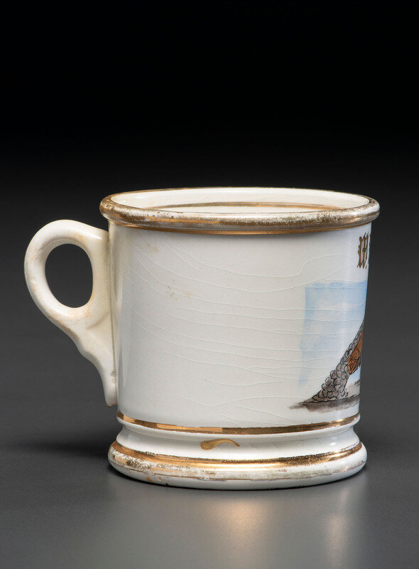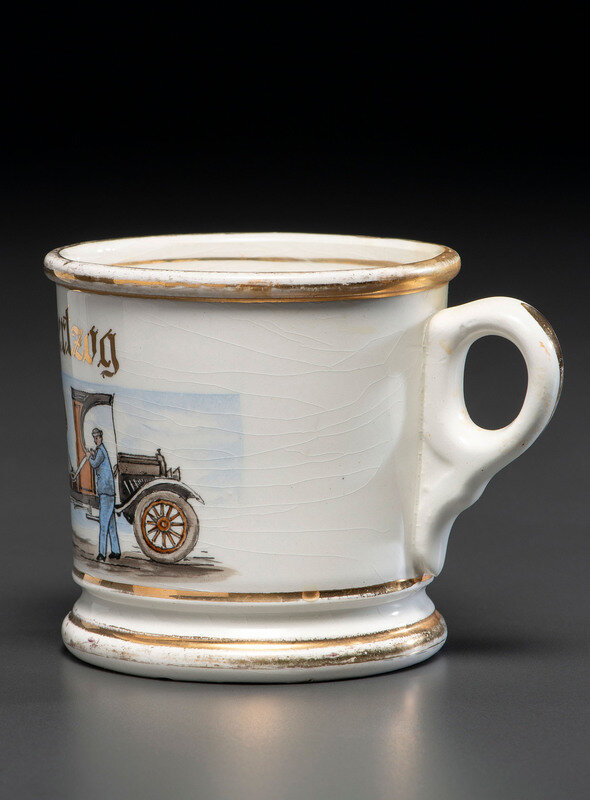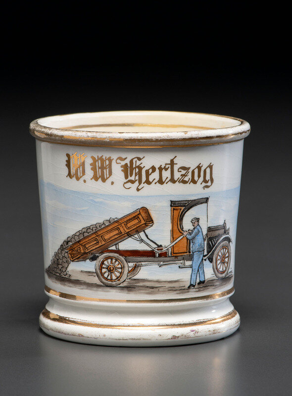 A Porcelain Occupational Shaving Mug Depicting a Dump Truck