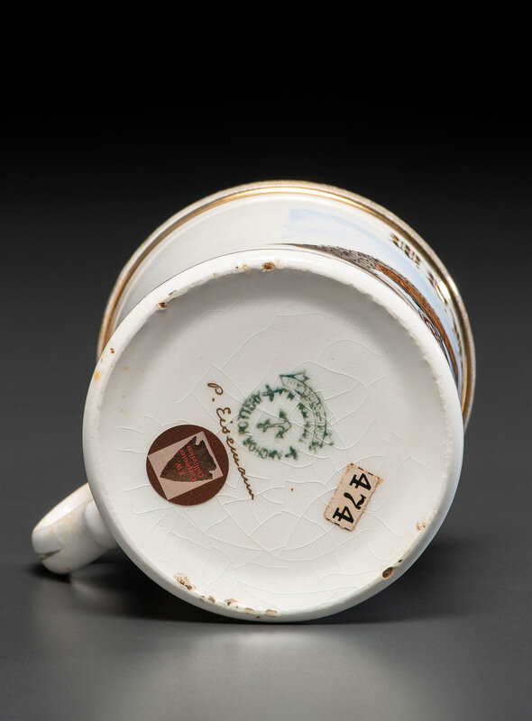underside signed in gilt P. Eisemann, and marked Anchor Pottery.