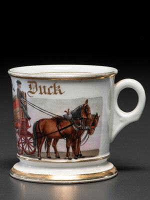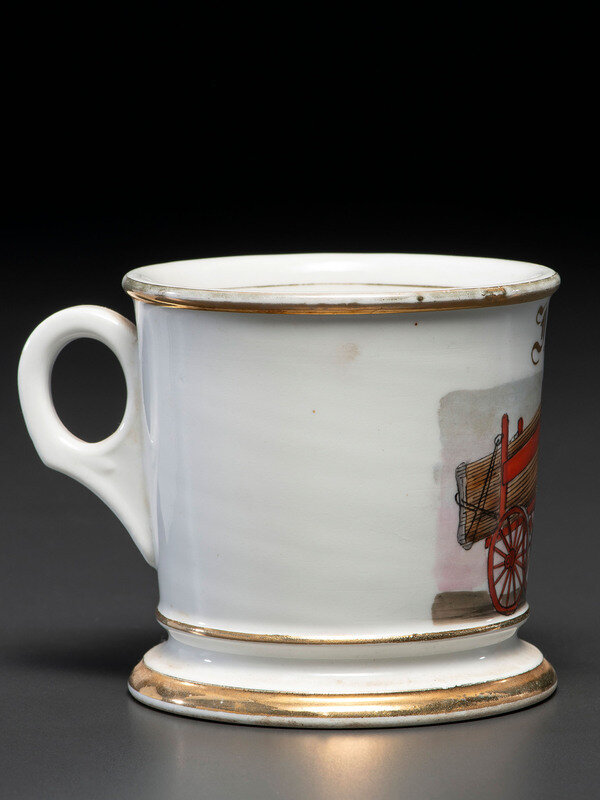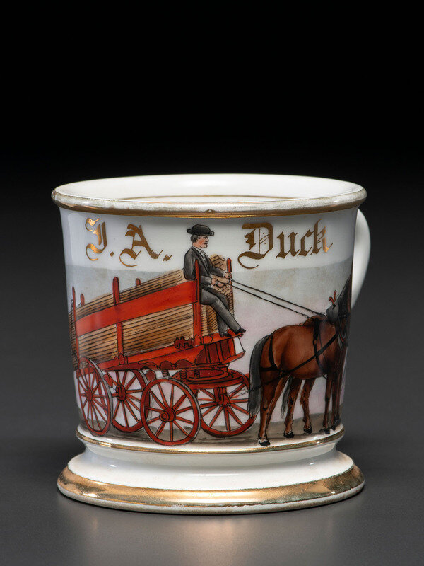 A Porcelain Occupational Shaving Mug Depicting a Lumber Wagon