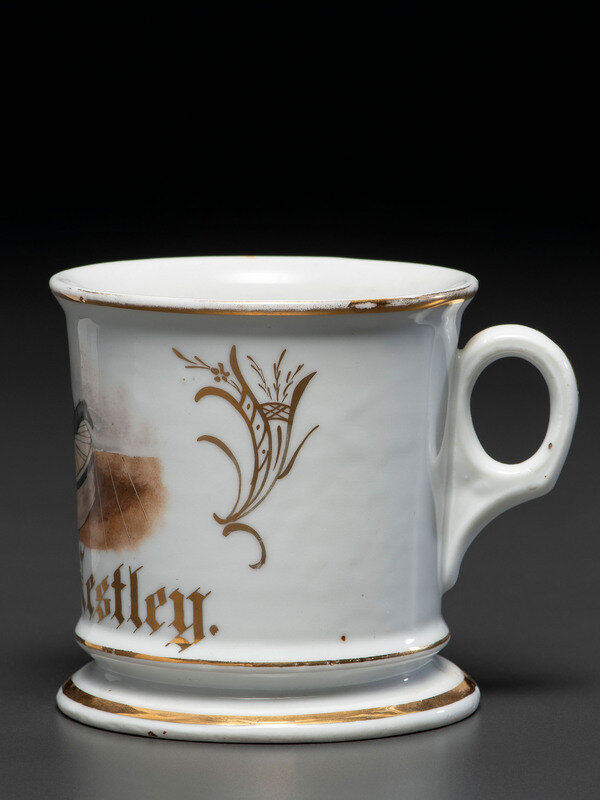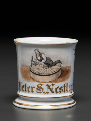A Mill Stone Dresser's Porcelain Occupational Shaving Mug Belonging to Peter Nestley