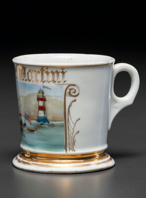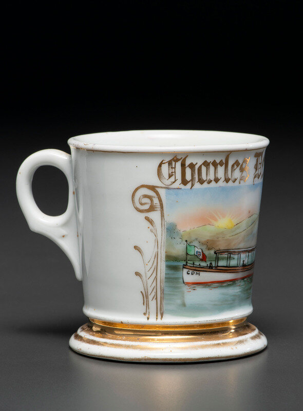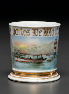 A Porcelain Shaving Mug Depicting a Motorboat