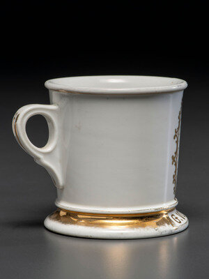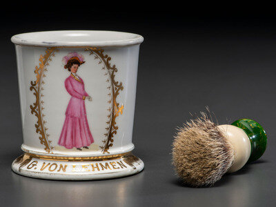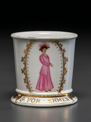 A Porcelain Shaving Mug Depicting a Fashionable Lady