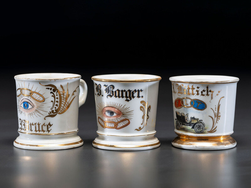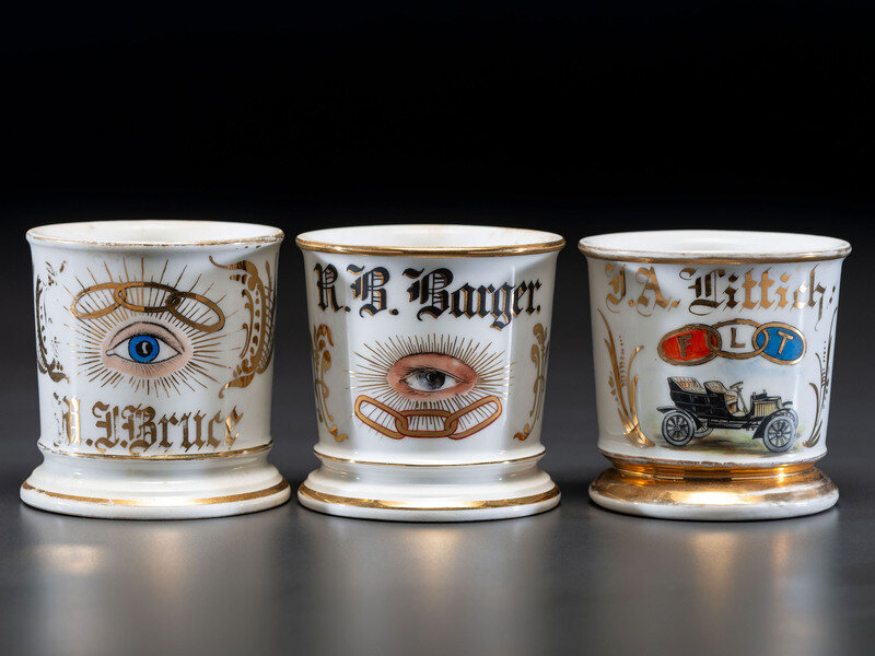 Three Oddfellows Porcelain Shaving Mugs