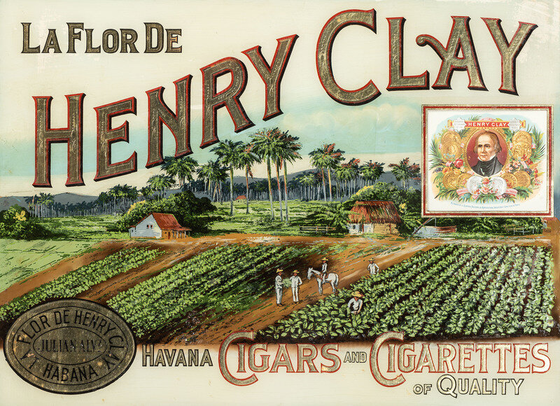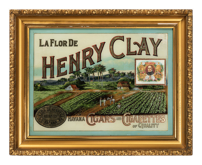 A Henry Clay Cigars & Cigarettes Reverse Painted Glass Advertising Sign