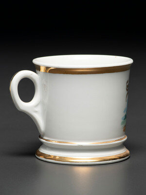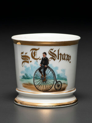 A Porcelain Shaving Mug Depicting a High Wheelman