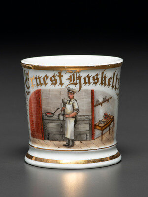 bearing the name Ernest Haskell in gilt lettering and depicting a cook standing at a stove.