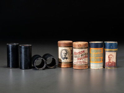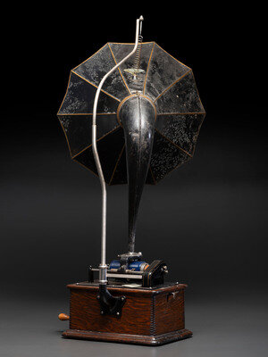 housed in a domed oak case, with horn and 116 Edison Blue Amberol cylinders.