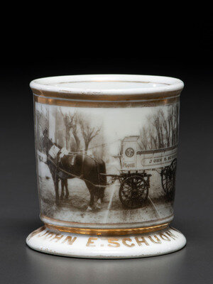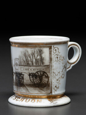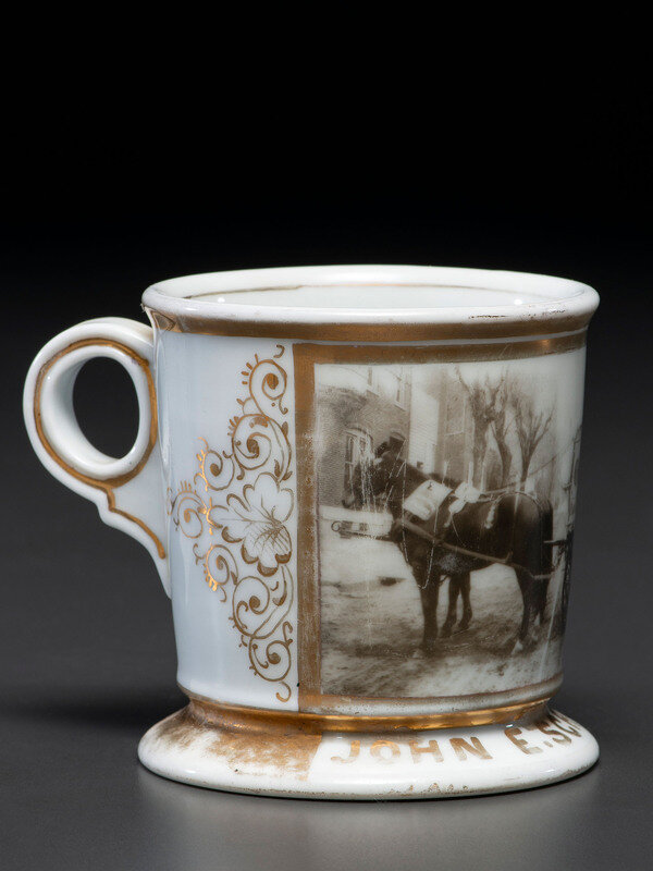 A Dry Goods Store Proprietor's Porcelain Occupational Shaving Mug Belonging to John E. Schuon