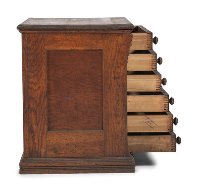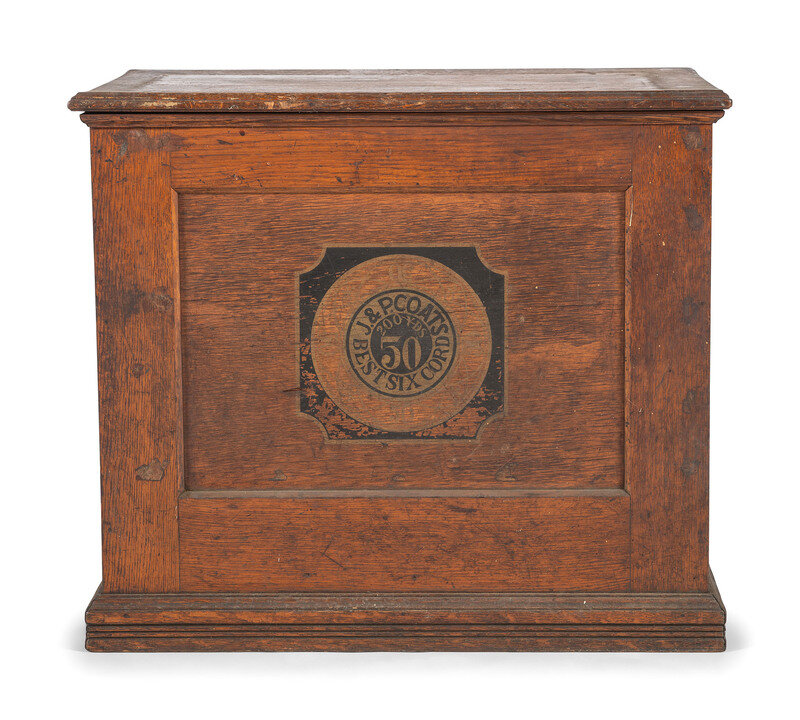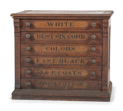 A J & P Coats Six Drawer Oak Advertising Spool Cabinet