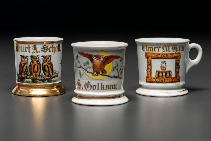 Three Fraternal Order of Owls Porcelain Shaving Mugs