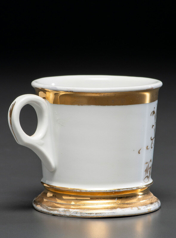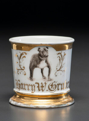 A Porcelain Shaving Mug Depicting an American Bulldog