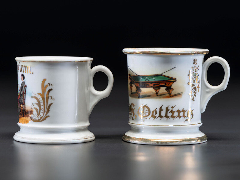 Two Tabletop Gaming Porcelain Shaving Mugs
