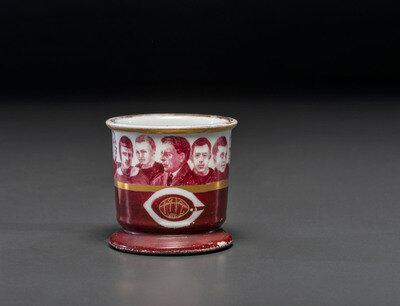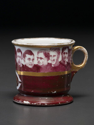Stagg's most significant contributions to football occurred during his forty-one-year tenure as head coach of the University of Chicago (1892-1932). Under his guidance, Chicago became known as a football powerhouse during the first quarter of the twentieth century, winning seven Big Ten championships (1899, 1905, 1907, 1908, 1913, 1922, and 1924). In addition to his football duties, he also coached track, baseball, and basketball and is credited with helping to organize the Big Ten Conference. In 1912, the year identified on this mug, the Maroons finished second in the Western Conference with a 6-1 record and outscored all their opponents.