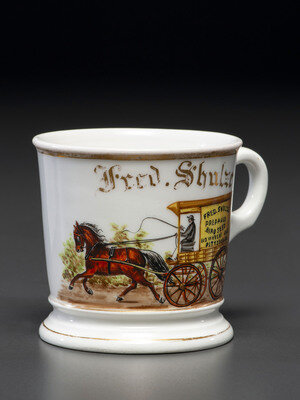 A Birdseed Salesman's Porcelain Occupational Shaving Mug Belonging to Fred Shulze