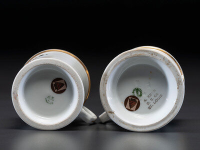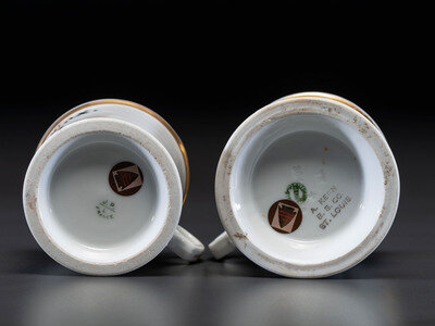 comprising one glass blower's example identified to A. J. Cox in gilt lettering and a trumpeter's example identified to Chas. Bernhardt.