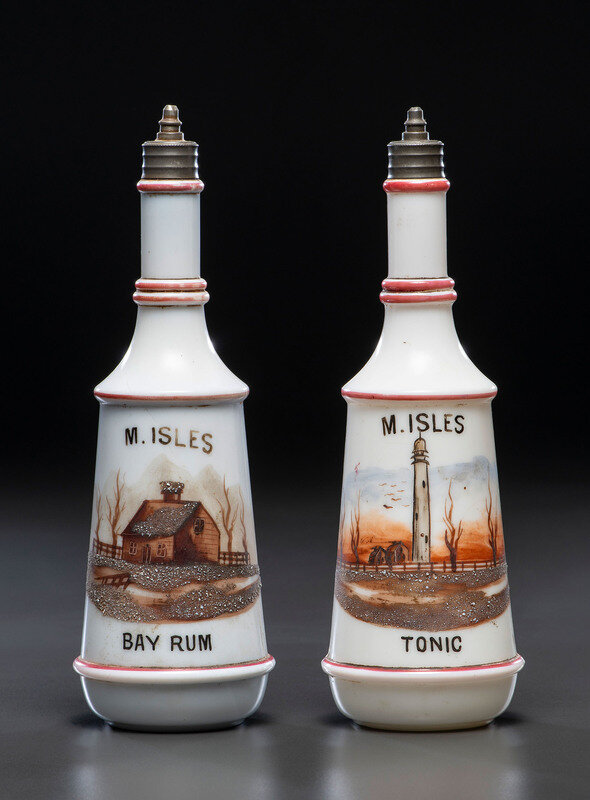 both labeled M. Isles and Bay Rum and Tonic, with landscape scenes.