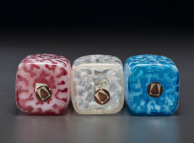 cranberry, blue and clear glass examples.