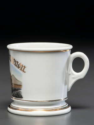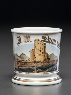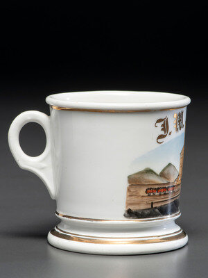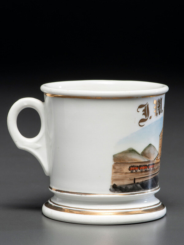 A Porcelain Occupational Shaving Mug Depicting a Coal Yard
