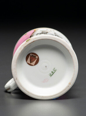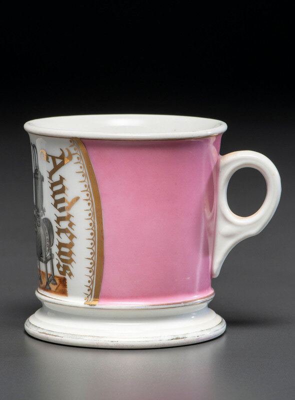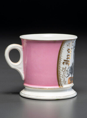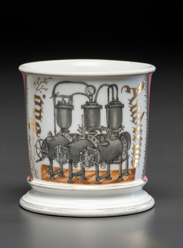 A Porcelain Shaving Mug Depicting A Steam Pump