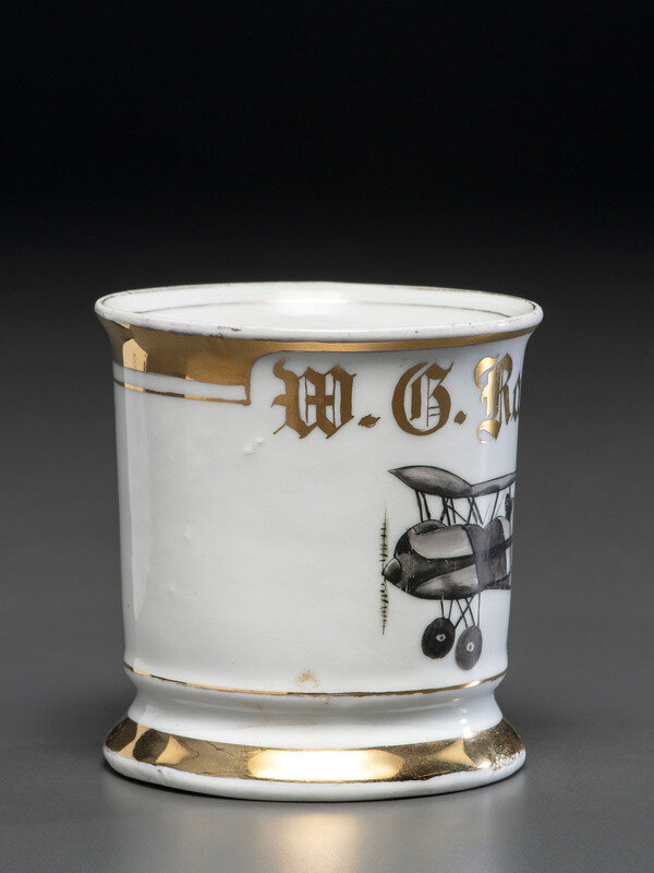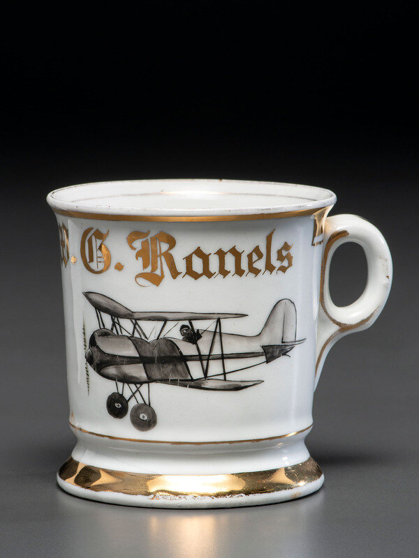 with the name W.G. Ranels in gilt lettering, and featuring a pilot flying an early biplane.