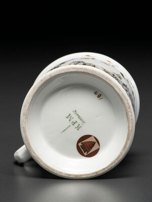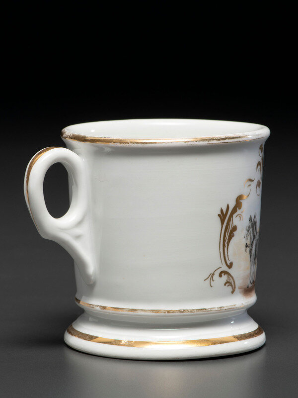 A Porcelain Occupational Shaving Mug Depicting a Horse-Drawn Hearse