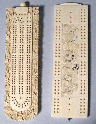 Both of flat rectangular form, carved to show low relief scenes and counting intervals.