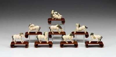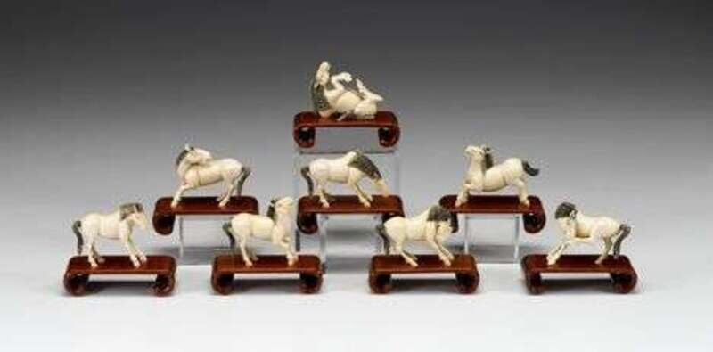 Eight Chinese elephant ivory horse models