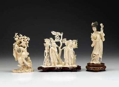 Three Chinese elephant ivory models 20th century