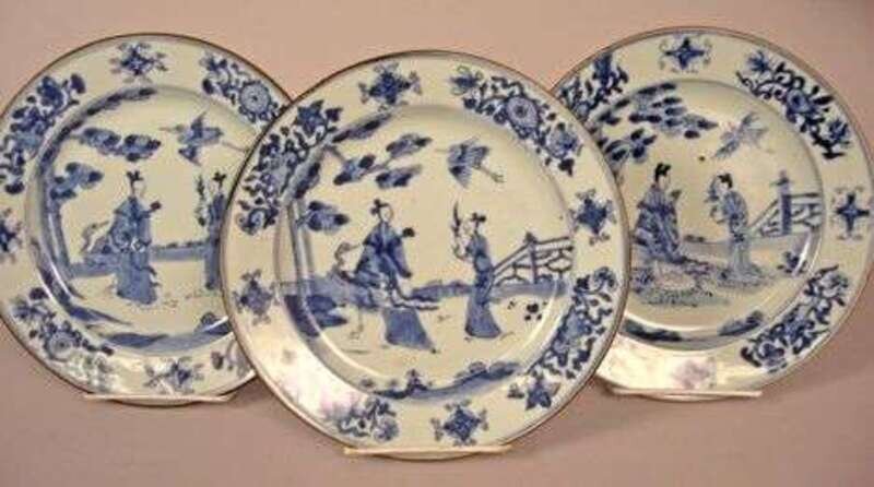 Three Chinese blue underglazed plates 18th century
