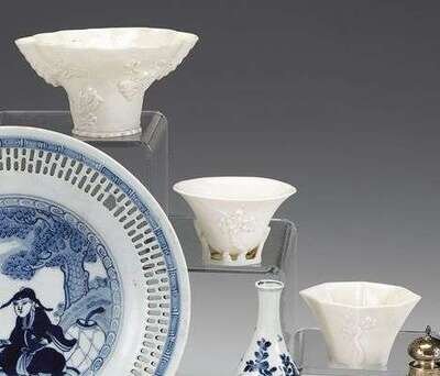 Three Chinese blanc de Chine libation cups 18th century