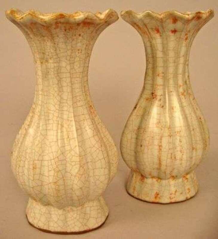 Unusual Ge-type ribbed vases Potters mark to base, late qing dynasty