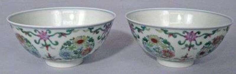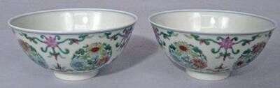 Pair of Chinese famille rose bowls blue yongzheng mark, 20th century