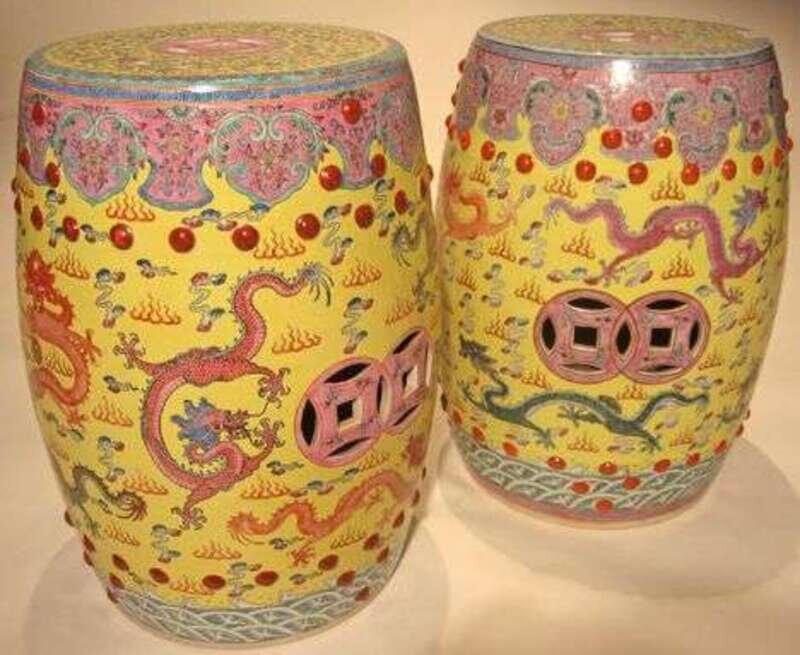 Pair of Chinese yellow glazed garden seats