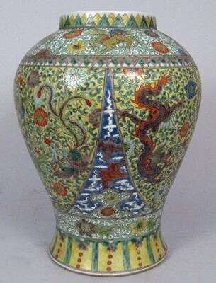 Chinese enameled porcelain baluster vase kangxi blue character mark, 19/20th century