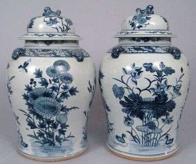 Pair of Chinese export blue underglazed covered vases late qing dynasty or later