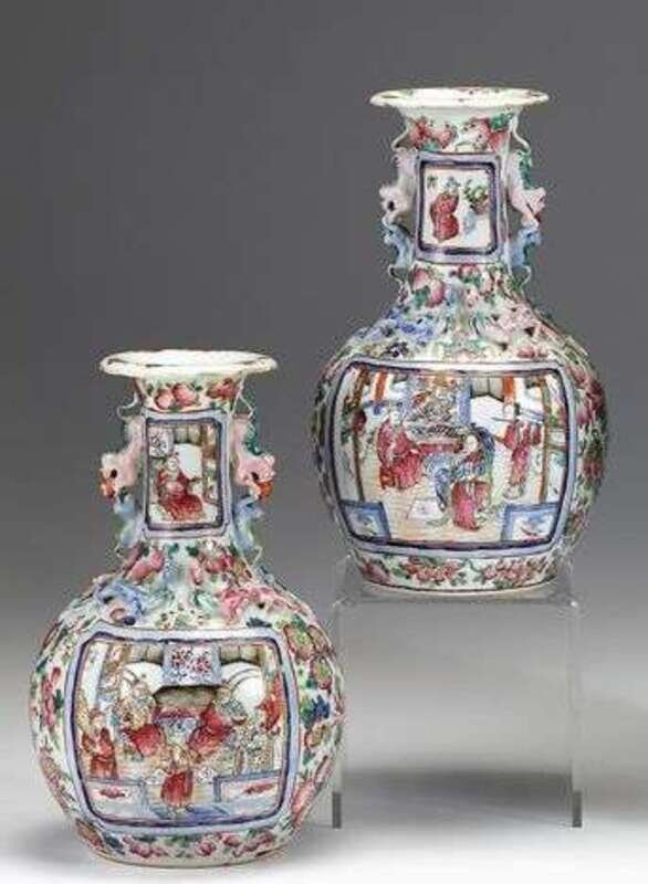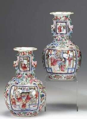 Fine Pair of Chinese export famille rose bottle vases mid 19th century