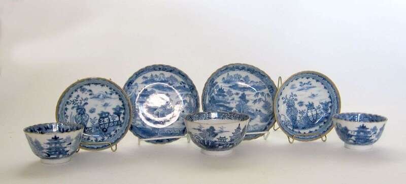 Group of three Chinese export blue and white teabowls and four saucers 19th century