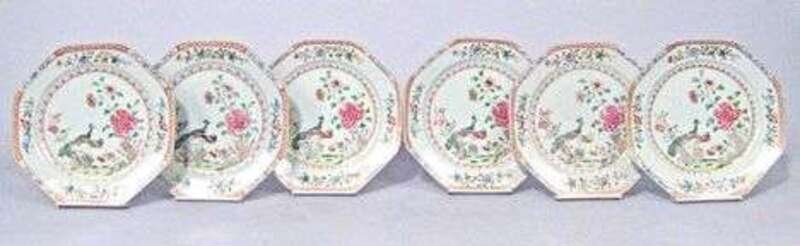 Six Chinese export porcelain octagonal luncheon plates qianlong period