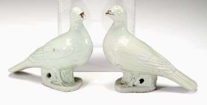 Pair of Chinese Export celadon glazed and painted model of doves 18th century