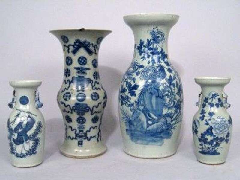 Comprised of a matched pair of baluster vases, mounted with Fu lion handles, together with a large baluster and yen yen form vase.