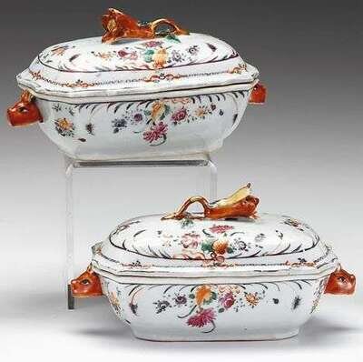 Pair of small Chinese export covered tureens qianlong period