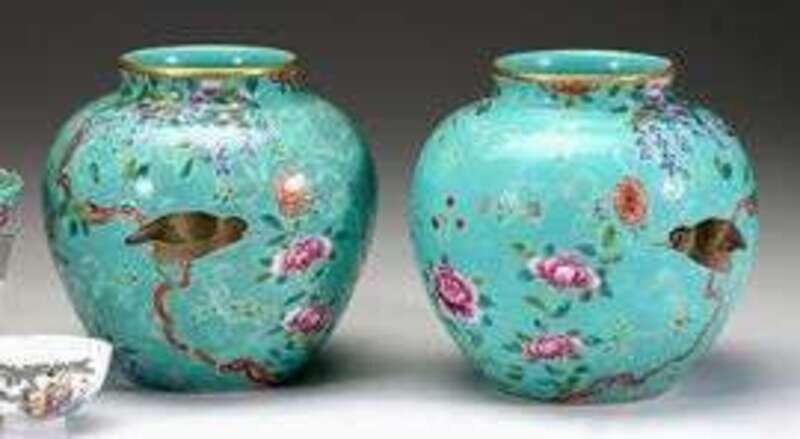 Pair of Chinese Dayazhai vases yong qing chang chun iron red four character mark, guangxu period