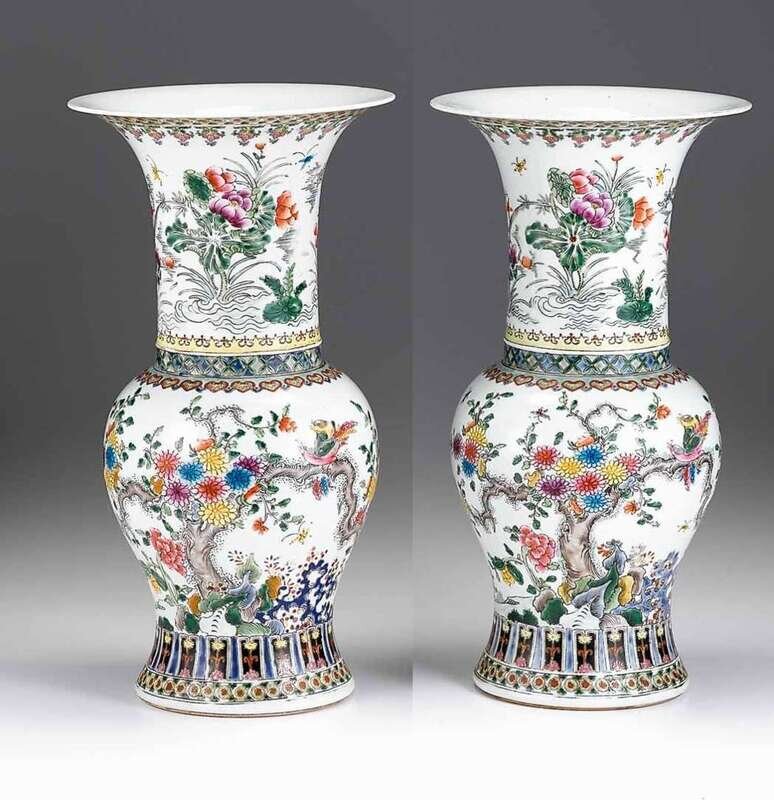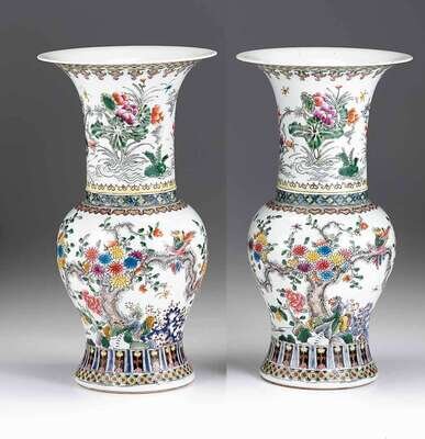 Pair of Chinese porcelain doucai baluster vases kangxi marks, 19th century